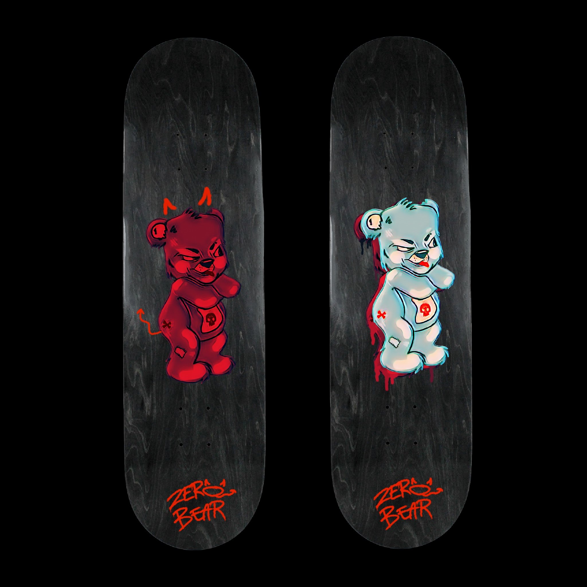 Girl skaters constantly get hate from men online and at skate parks. We’re taking that hate and putting it on the bottom of decks. Our new spokesperson Zero Bear, will also encourage these skaters to embrace the hate and put their own hate comments on the bottom of custom decks.